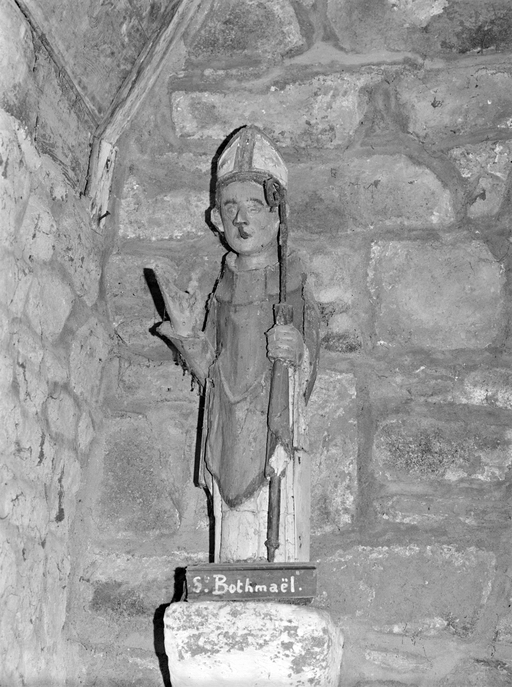 Dos et partie droite vermoulus, socle rapporté, main droite abîmée.
