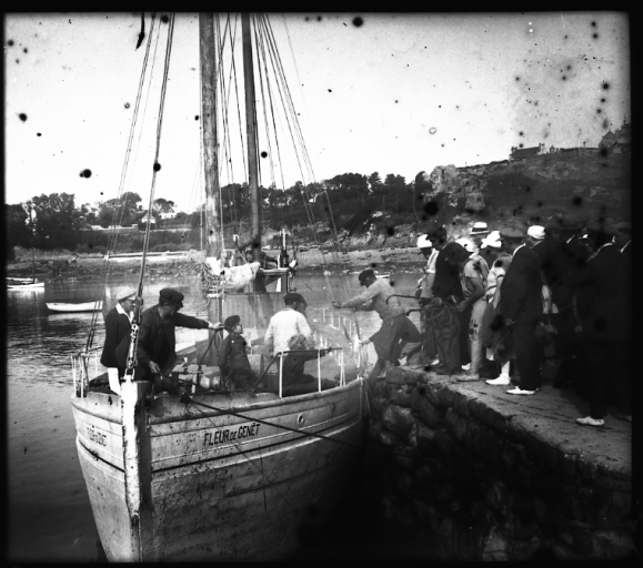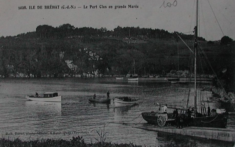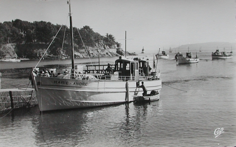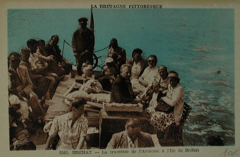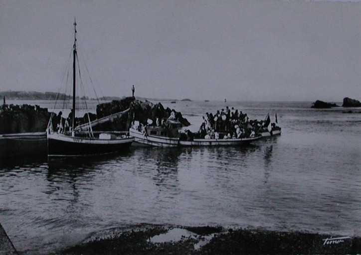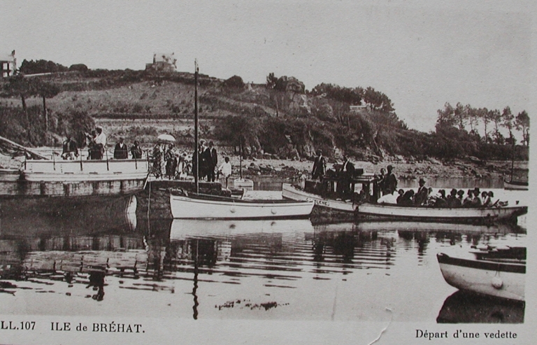 D'après les recherches de l'abbé Louis Menguy et de Jean-Paul Colin, descendant d'une lignée d'armateurs de vedettes à passagers de Bréhat et ancien armateur lui même. Les documents du 17ème siècle signalent qu'à L'Arcouest 'on allumait un grand feu d'ajonc, signal habituel pour demander le passage'. Cependant, la traversée était souvent périlleuse. L'Extrait des registres mortuaires', relevé par l'abbé Louis Menguy, signale pour l'année 1674 'quatre femmes noyées venant du marché de Penpol, le mercredy dernier d'octobre'. 'Le 1er janvier 1794, 19 personnes ont péri en mer en voulant se rendre au marché de Paimpol, probablement en raison du mauvais temps'. La traversée s'effectua à la voile et aux avirons jusqu'au 1er quart du 20ème siècle. En 1880, Olier Colin assurait une liaison régulière avec le continent, avec son bateau le 'Pétrel'. Il était aussi patron du premier bateau de sauvetage de Bréhat 'Notre-Dame-de-Keranroux'. En 1890, son fils Jean Colin (1857-1929) prenait la relève à bord de 'L'Insulaire', du 'Moussaillon' et du 'Pétrel'. André Colin (1889-1945) poursuivit ce service et organisa le 1er voyage à Jersey avec la 'Fleur d'ajonc'. Les premières vedettes motorisées provenaient - semble t-il - d'un armement de Saint-Malo qui assurait au début du 20ème siècle la liaison entre Dinard et la cité corsaire (1907), dont la 'Jeanne-d'Arc', équipée d'un moteur à explosion de 4 cylindres, 24 cv, construite à paimpol par le chantier Kerbiguet et appartenant à la société Lecoq-Zimmermann-Briand. Quelques voiliers reprirent du service pendant la guerre '14-18', en raison de la pénurie de carburant. La fréquentation touristique de Bréhat va cependant favoriser l'organisation d'un service de passage plus régulier, quatre fois par jour, avec une aide du Département, à partir du 2ème quart du 20ème siècle (1925). Le service de la Poste profita aussi au passage de la population locale. Le 15 juin1929, le Conseil Général des Côtes-du-Nord votait une subvention 'pour organiser un service régulier de vedettes à moteur desservant l'île de Bréhat à partir de l'Arcouest en Ploubazlanec'. Un contrat était passé avec André Colin, armateur le 29 juin 1931. Une 'cabane blanche', portant l'enseigne 'Vedettes de Bréhat', fut érigé à l'Arcouest pour délivrer les billets de passage. En 1933, les 'Vedettes bleues' de Jean Colin-Corlouer prenaient la relève et la concurrence se mettait en place entre différents armateurs. Dans les années 1970, la Chambre de Commerce remplaçait les cabanes par des guérites en pierre, louées à ces armateurs. Les vedettes assuraient aussi le transport maritime des marchandises à Paimpol et d'autres services pour les fêtes et les pardons. Les premiers armateurs furent Jean Colin (Vedettes bleues), Colin-Foinant (Vedettes bréhatines), Allainguillaume et Corlouer. Actuellement, les deux derniers armateurs se sont regroupés pour faire une seule compagnie. Pendant la seconde guerre mondiale, le 12 février 1942, la vedette 'Le Korrigan' partit avec 6 passsagers à bord pour l'Angleterre. Certaines vedettes faisaient aussi le bornage et le transport des primeurs de Bréhat à Paimpol, dont la 'Marie-André', qui débarquait à partir de 1952 ses 30 tonnes de pommes de terre, sable, goémon et autres légumes au quai des Bréhatins à Paimpol et pour la cidrerie de Bréhat (Théo Kerjolis). Ce bateau prit le relais du 'Quintovic', bateau malouin qui faisait le cabotage entre la France et l'Angleterre. La vedette 'Île de Bréhat, encore appelée 'La Vieille', fut le premier bateau de transport motorisé, avant le bateau la 'Jeanne d'Arc' d'un armement malouin, la 'Marie-André' et plus tard la 'Mylène'. La 'Vieille' allait prendre des gravillons à la cale de la 'Mère Corlouer' à Lézardrieux, provenant de la carrière du Moulin Mer (Hélary). La première barge de Bréhat fut mise en service par le Conseil Général en 1984. Le premier concessionnaire fut François Geffroy, puis Pierre Collinet, Bruno et Sylvain Corlouer. Les vedettes construites au début des années 1950 pour les armateurs provenaient du chantier Rolland de Primel-Trégastel (Plougasnou), hors la 'Paimpolaise' et la 'Messaline', construites par le chantier Yves Daniel à Paimpol. Avec les nouvelles vedettes en matériaux composites ou en métal, les vedettes de Bréhat disposent de plus de 1000 places pour le passage. Toutes les anciens bateaux de service ont disparu à part le 'Ferless', étudié avant et après sa restauration complète. Deux bateaux ont été sélectionnés et étudiés : le 'Ferless' et le 'Mylène'. Deux demi-coques ont été étudiées : la 'Marie-André', et la 'Bretagne' et une maquette, celle du bateau de transport la 'Mylène'.