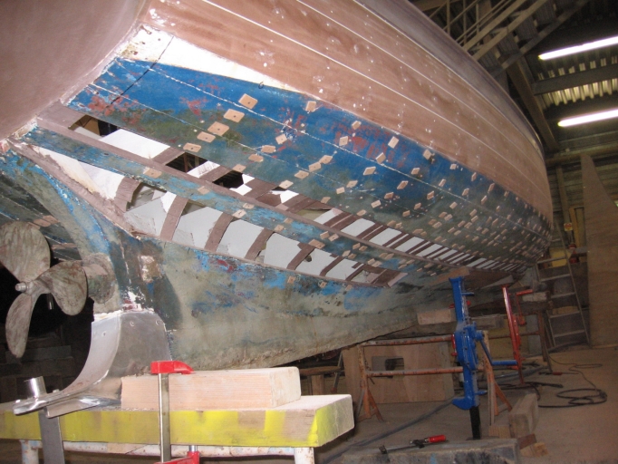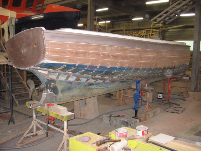 Le 'Ferless' est un bateau creux, avec un petit pontage avant, sur une longueur de 96 cm. La coque mesure 7, 15 mètres hors tout pour 1, 95 mètres au maître bau. Elle déplace environ 2 tonneaux. Le tableau mesure 1, 25 mètres de largeur sans les listons. Le tirant d'eau à l'avant est de 0, 70 mètres et arrière de 0, 30 mètre. Le bateau était motorisé à l'origine avec un moteur Vetus de 15 chevaux Diesel. Une petite cabine lui fut adjoint à l'avant pour le confort des passagers. Les éléments principaux de la structure à l'origine étaient en chêne (quille, étrave, étambot, allonge, tableau, varangues une sur deux et bâti moteur). L'autre moitié des varangues ainsi que les membrures franches à l'origine (remplacées par des membrures ployées en acacia), recevaient des bordés et préceintes en sapin du pays. Lors de la refonte totale du bateau en 2008, les serres, elles aussi en sapin, les bouquins, courbes d'hiloire, barrots des petits gaillards avant et arrière, en chêne, ont été changés en sapelli ou en iroko. Les hiloires, plats-bords, le tableau et 70 % des bordés et des membrures (franches) ont été refaits à neuf. Les dernières pièces d'origine sont la quille, l'étrave, l'étambot, l'allonge, les petites varangues sous le bâti moteur ainsi que le bâti. Quelques bordés de la dernière refonte ont été conservés, tout le reste a été changé. Après l'enlèvement du lest en ciment, chaque varangue et chaque barrot de pont ont été réalisés en une seule pièce, sans alourdir la coque pour autant. Les seules modifications apportées par rapport à l'état de neuvage du bateau sont les suivantes : les petits gaillards ont été vernis au lieu d'être peints ainsi que le nom du bateau et son immatriculation.