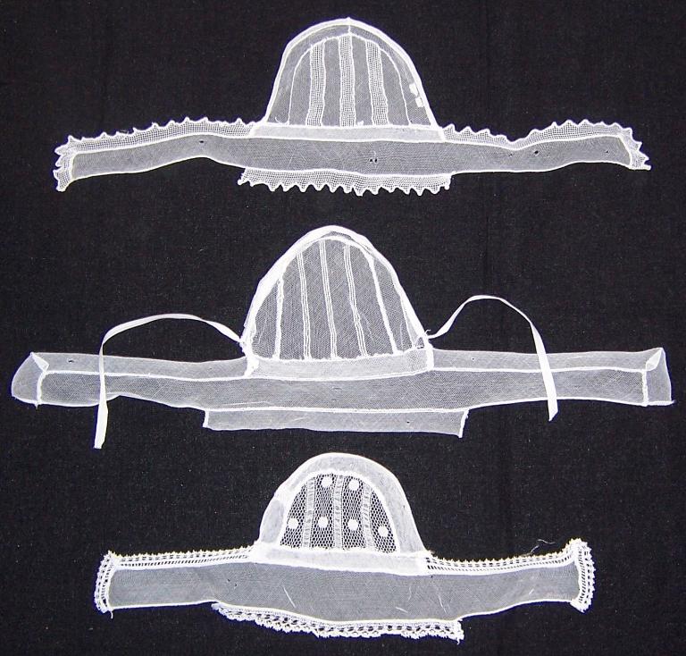 Michel Guillerme, autre informateur important, apporte une précision sur l’histoire de la coiffe : à propos de l’aire formée par ces deux groupes de coiffes, il pense en effet que, du fait de l’ancienneté de celles-ci, les coiffes du type « catiole » ont précédé le groupe des « bonnets carrés ».