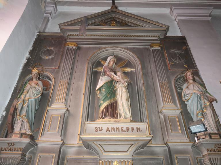 La statue de sainte Catherine d'Alexandrie est placée dans un retable dédié à sainte Anne dans le bas-côté nord. Elle est associée à une Éducation de la Vierge au centre et une sainte Philomène.