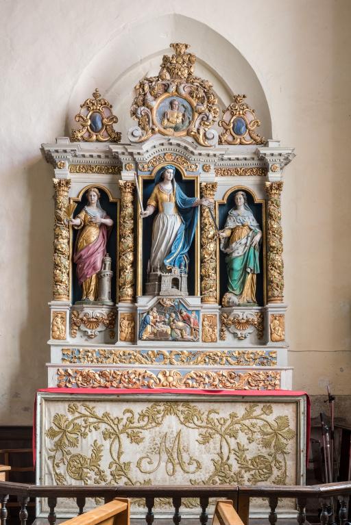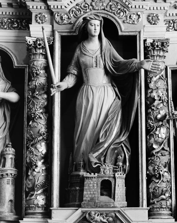 Sainte Barbe : revers évidé fermé par une planchette ;