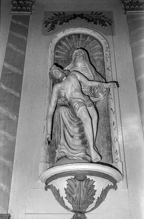 Groupe sculpté : Vierge de pitié, ancien prieuré de Lochrist an Izelvet (Plounévez-Lochrist),