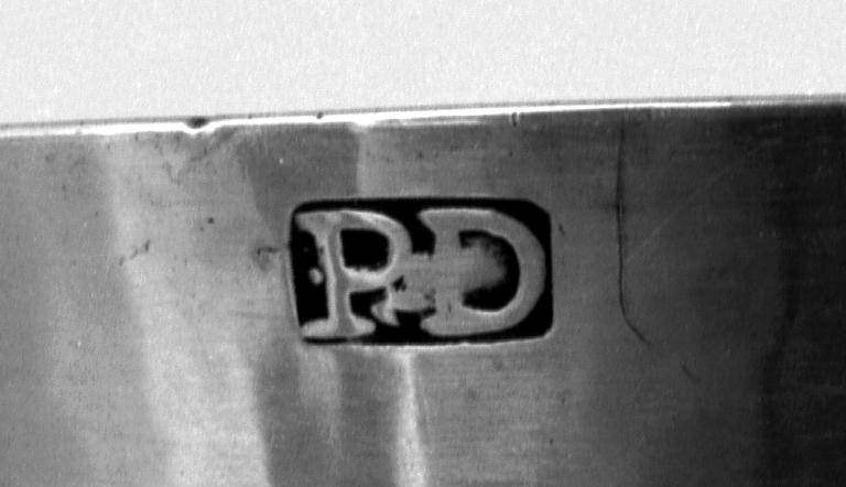 Diamètre du pied ; diamètre de la coupe : d = 9 cm. Dimensions de la patène : d = 15 cm, pds = 110 gr.