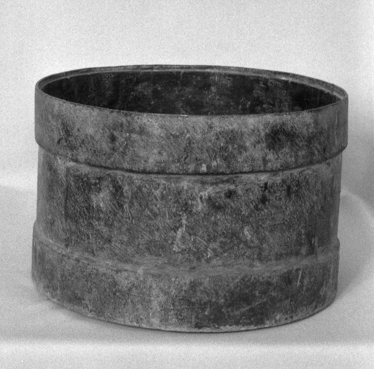 | Réserve à eau baptismale : plomb ; 19e siècle (fig.). |