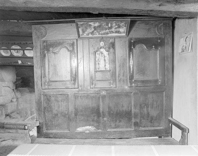 Comme dans une grande partie de la Cornouaille, le mur nord de la pièce, aveugle, accueillait le « front des armoires ». Il s’agissait d’un alignement d’armoires, quelque fois un buffet vaisselier ou une horloge, qui accompagnaient un lit-clos (ou demi-clos) situé contre la cheminée : le gwele tal an tan (le lit-clos près du feu). Pour une meilleure cohérence de l’ensemble, les meubles qui le composaient étaient généralement surmontés d’une corniche moulurée sur laquelle on avait disposé une rangée de bols multicolores.