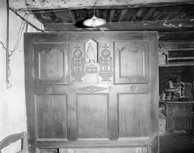 Outre sa fonction de cloisonnement, le drustuilh servait également de meuble de rangement. La porte qui se trouve du côté du mur donne sur une petite armoire peu profonde fermant à clé et dans laquelle le « patron » de la maison rangeait certaines choses importantes. L’autre porte est factice mais sa présence accentue l’harmonie esthétique du meuble.
