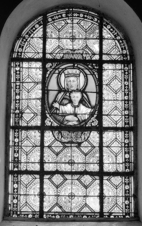 Chaque baie comporte une lancette, divisée par 3 barlotières horizontales, 2 verticales, 4 vergettes (baie 5) et 7 vergettes (baie 6). Les personnages sont représentés en buste, dans des médaillons.