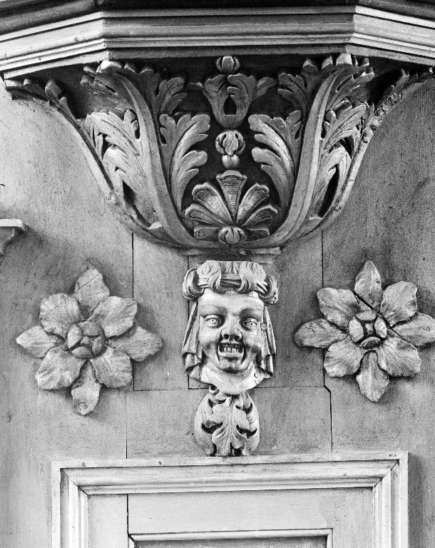 - ornementation, corne d'abondance, rinceaux, masque, chute végétale, entrelacs