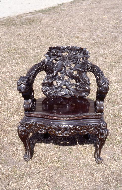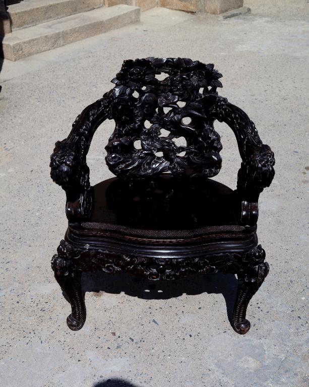 Ensemble de 2 sièges et d'un fauteuil de la 2e moitié du 19e siècle rapporté de Ceylan et donné à la paroisse par le R.P. Milliner, de Sein.