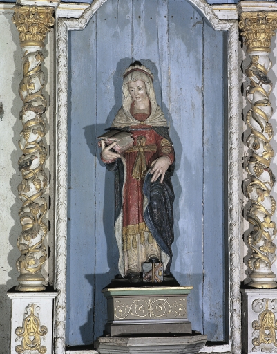 La statue de la seconde moitié du 17e siècle provient de la chapelle Saint-Guénolé à Lopérec. Elle a été attribuée sans certitude à l'atelier Le Déan. L'arrêté de classement l'identifie comme une sainte Anne datant du 15e siècle.