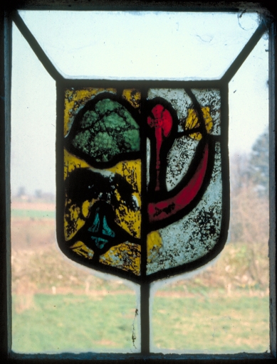 Ensemble composé de trois éléments (maîtresse vitre, baie sud, panneau isole) conservés dans la chapelle du manoir. D'une Nativité, seul un fragment figurant l'Adoration des Mages à été est conservé.