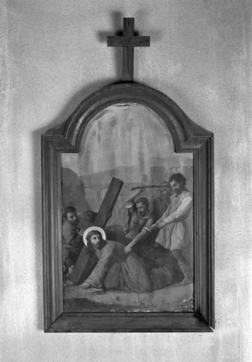 Chemin de croix composé de 13 tableaux en métal et cadres en bois mis en place en 1896, en remplacement d'un autre chemin de croix mentionné en 1872.