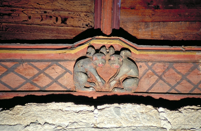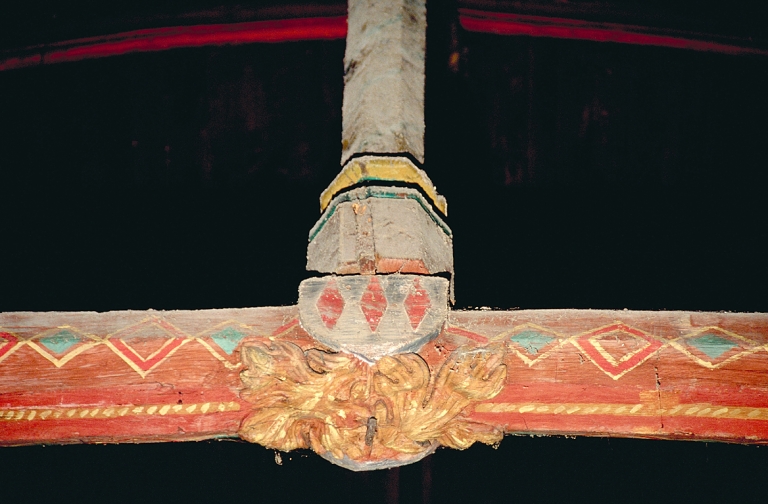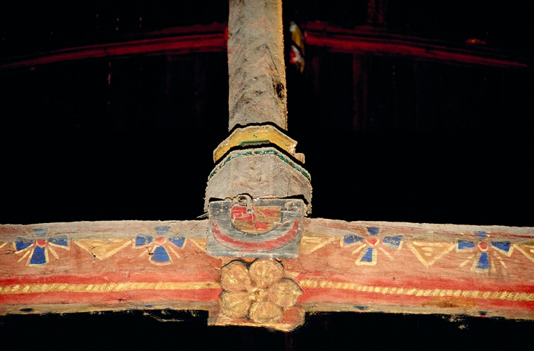 Couvrant la nef construite à la fin du 13e siècle, l'ensemble a été mis en place en 1430 dans le cadre de la reconstruction de l'édifice. Une partie des armoiries figurant sur les poinçons n'a pu être identifiée. L'édifice a été classé parmi les monuments historiques en 1915.