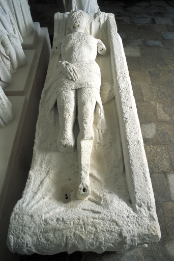 Parmi une trentaine de "Mise au tombeau" conservées en Bretagne, celle-ci est la plus ancienne. En dépit des mutilations, cette oeuvre majeure en fin calcaire blanc conserve une force singulière. La monumentalité, le traitement raffiné des chevelures et des barbes, la somptuosité des costumes désignent une production exceptionnelle, à rapprocher des réalisations contemporaines de la vallée de la Loire.