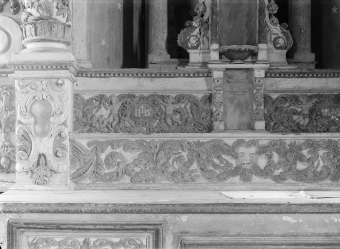 Rinceaux, caryatides, cuirs ornent ce retable.