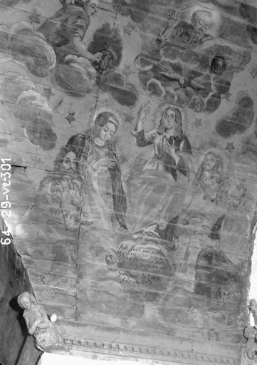 A rapprocher des lambris peints de la chapelle du Mur à Cléden-Poher, de l'église paroissiale de Cléden-Poher et de la chapelle Sainte-Suzanne de Mur-de-Bretagne.