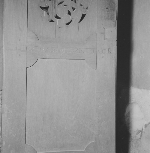 Inscription à l'intérieur de la porte centrale du confessionnal nord : M ALLAIN MENUISIER GUEZENNEC CURE L- LE CANNEVET MER. Sur le confessionnal sud : I LE GOFF SCULPTEUR DE ROSTRENEN RIOU RECTEUR 1791 LE LOUPER PRETRE.