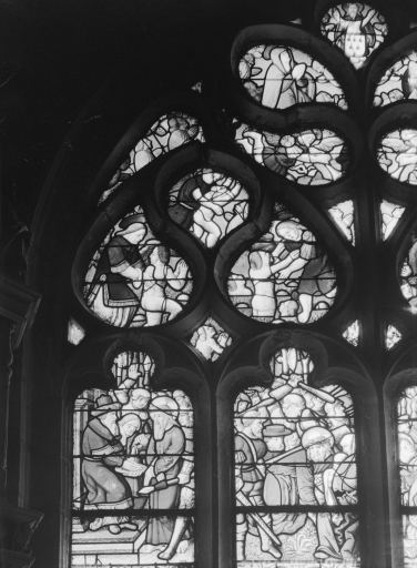 4 lancettes trilobées de 4 panneaux, réseau à soufflets et mouchettes.