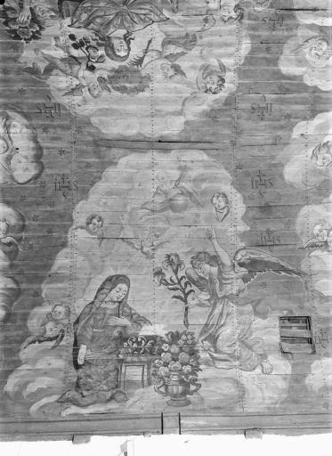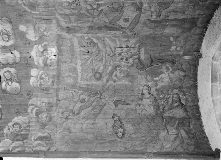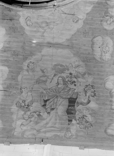 La nef, le bas côté et le choeur sont lambrisés. Le lambris primitivement peint en entier ne l'est plus qu'à partir de la 3e travée de la nef et du bas-côté sud. Le décor a totalement disparu du bas côté nord.