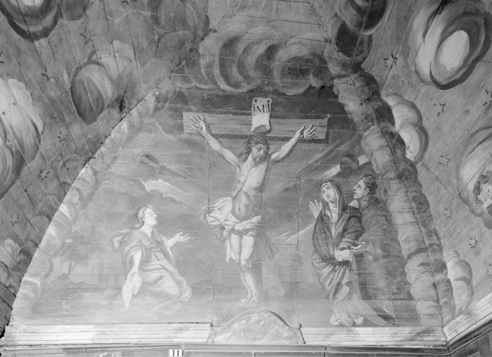 F. F. PAR LORDRE DE M JEAN LE GLEOU LAN 1741. Signature en bas à droite de la crucifixion : HERBAULT pinxit 1750.