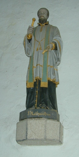 Parmi douze objets ou ensembles d´objets repérés, deux ont fait l´objet d´un dossier individuel. Les statues des saints Laurent, Mathurin, Pierre, Adrien et Philippe (?), oeuvres de série en plâtre polychrome, semblent provenir du même atelier. La statue de saint Adrien provient de la chapelle (disparue) du même nom. Elles ont été identifiées, par erreur, comme des oeuvres en terre cuite. La statue de sainte Thérèse de l´Enfant Jésus porte, gravées sur la base, la date (1909), le cachet et la signature de l´atelier B. M. Bernard R. ainsi que le nom du revendeur, Le Paul, Quimper. La statue de la Vierge de Lourdes est en bois. Un ancien bénitier, une ancienne mesure à grain et le vestige d´un fût de croix sont relégués dans le coin sud-ouest de la nef. Une bannière sertie dans un cadre est placée sur le mur nord de la nef.