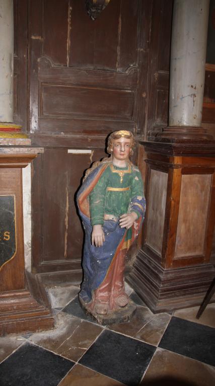 La statue a été déposée. Elle se trouve devant le retable du rosaire à gauche.
