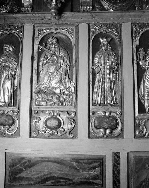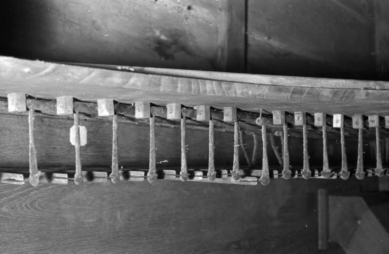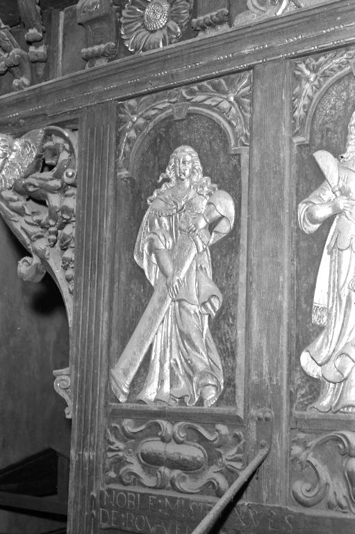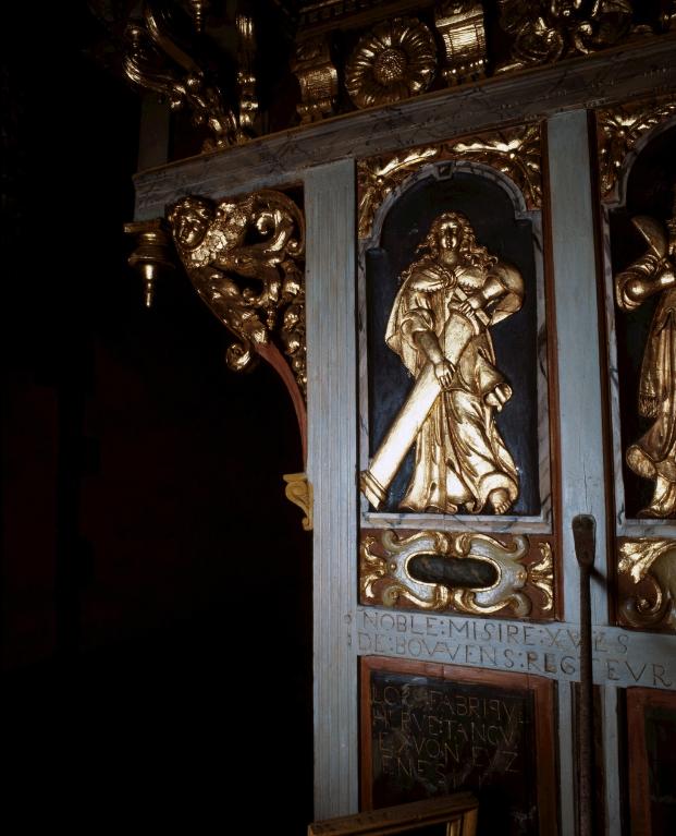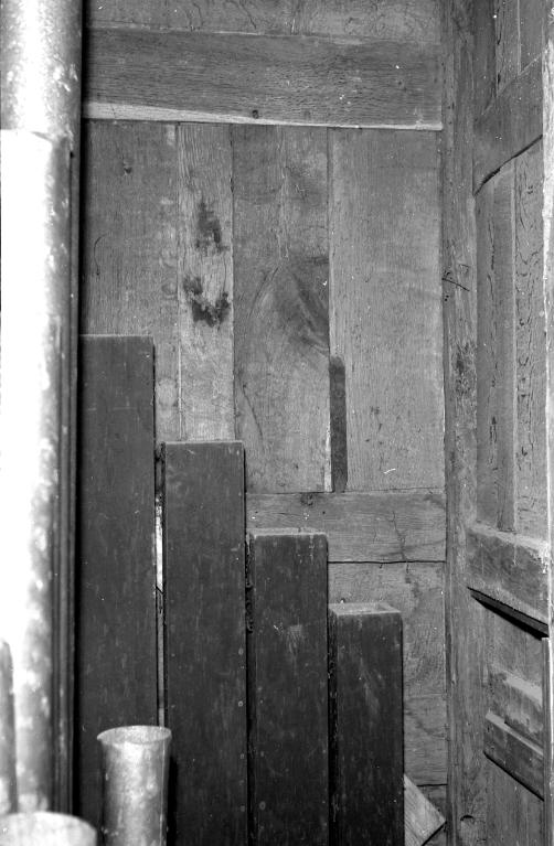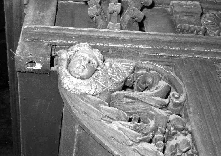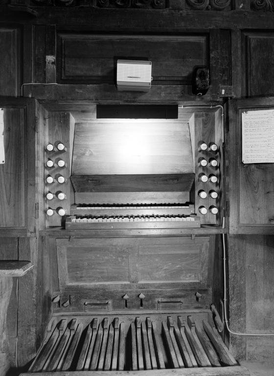 Autre inscription, sur panneau de chêne, provenant du buffet du positif (?) : MATHIAS:GUERNIAU:ORGANISTE:LAN:1708