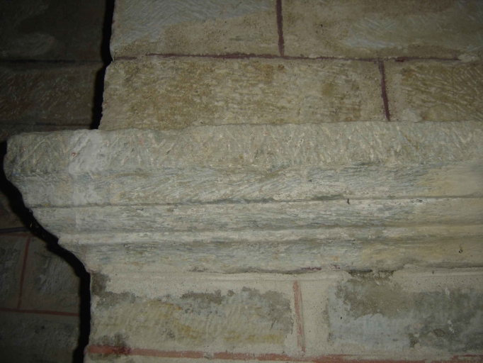 Dans la nef où les chapiteaux qui couronnaient autrefois les colonnes ont disparu, seules subsistent les bases qui présentent toutes un même profil formé de deux tores et présentant des griffes à leurs angles. Les chapiteaux couronnant les colonnes engagées du transept présentent une forme tronconique, avec un large tailloir le plus souvent orné de motifs et un astragale épais de forme torique. Les colonnes massives qui composent les piliers de la croisée du transept présentent des frises sculptées qui encadrent le chapiteau de la couronne engagée. Les tailloirs et astragales des chapiteaux et des colonnes se prolongent pour créer une sculpture uniforme sur l'ensemble du pilier. Le chapiteau de la colonne du mur ouest du bras nord du transept présente deux registres d'ornementation. Au niveau inférieur une frise de petites feuilles à l'extrémité recourbée, ourlée, donne naissance au centre de la corbeille à deux tiges qui s'épanouissent au registre supérieur pour former dans les angles des volutes assez volumineuses. L'ensemble des chapiteaux de forme tronconique présents au transept possède des motifs de végétaux difficiles à identifier. La composition est la même pour chacun : un motif central qui occupe toute la hauteur de la corbeille et qui pourrait être assimilé à une fleur est encadré par des tiges qui donnent naissance sous le tailloir dans les angles de la corbeille à des motifs de feuilles, volutes ou coquilles. Les tailloirs sont parfois nus, parfois ornés de motifs : rinceaux, torsades. Seule la pile sud-ouest possède des frises "tournantes" sculptées. Côté nef un motif de tige baguée formant un anneau, dédoublée et terminée en volutes symétriques, se répète. Côté croisée du transept, une frise de pommes de pins suspendues à des tiges. Enfin, du côté du bras nord du transept se déploie une suite de quatre arcade en plein-cintre retombant sur des colonnes, sous lesquelles sont sculptés des têtes et des cous. Au portail du mur pignon du transept sud, on conserve les vestiges d'un ancien tympan sculpté qui devait représenter une Maiestas Domini. En effet, on devine encore la représentation du Christ bénissant de sa main droite et entouré du tétramorphe. Le Christ dont les différentes parties du corps semblent disproportionnées, levait sa main droite en signe de bénédiction et avait le bras gauche replié sur la poitrine. Sa tête massive et rectangulaire était apparemment nimbée. Il était semble t-il placé dans une mandorle dont on distingue encore les contours, parfois perlés. Le bas du vêtement devait être orné de motifs. Les symboles des quatre évangélistes sont devenus pratiquement illisibles, seul le lion de saint Marc peut être évoqué pour la représentation située en haut à droite du tympan. La description faite par Roger Grand dans son ouvrage paru en 1958 permet de connaître la disposition d'origine des éléments sculptés. En bas, à gauche se trouvait le boeuf de saint Luc, en haut à gauche l'aigle de saint Jean, en haut à droite le lion de saint Marc et en bas à droite l'ange de saint Mathieu. Le linteau est orné d'un cordon végétal, les voussures du portail présentent des motifs géométriques. Les voussures retombent de chaque côté du portail sur trois colonnettes couronnées de chapiteaux sculptés. Les tailloirs sont ornés de motifs d'étoiles, quant aux corbeilles elles reçoivent des motifs végétaux semblables à ceux présents dans le transept : feuilles recourbées dans les angles, rinceaux, tiges terminées en volutes et baguées... Les chapiteaux des colonnes recevant les arcs des baies du mur pignon présentent des motifs que l'on retrouve également à l'intérieur de l'édifice : corbeille à deux registres avec feuilles ourlées et tiges terminées en volutes au niveau supérieur.