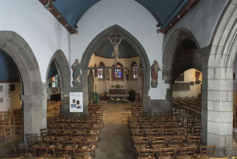 Saint-Sébastien, bois polychrome, 16e siècle (chapelle Saint-Sébastien bas-côté nord) ; tableau de l'autel, 17e siècle ; Ecce Homo, bois polychrome ; saint Pierre aux liens, 18e siècle, provient du Tréhou ; Vierge à l'Enfant, 18e siècle, bois polychrome. Saint Yves, 17e siècle, bois polychrome ; Saint Mathurin, 17e siècle ; Sainte Barbe, classée MH en 1968 : 16e, en pierre de kersanton, inscription sur le socle : jehan fist faire l'an MVCXI ou MVCXVII ; saint Jean-Baptiste, 17e siècle attribuée à Antoine Chavaniac, MH 24/06/1996. Crucifixion, de 1678, sculptée par Antoine Chavaniac, maître sculpteur du roi, né à Clermont-Ferrand ; Notre-Dame de la Délivrance, 16e siècle, bois polychrome. Saint Laurent, 16e siècle, en kersanton, provient de l'ancien mur du cimetière d'Irvillac. Saint-Corentin, bois polychrome, 17e siècle, provient de la chapelle de Loperhet.