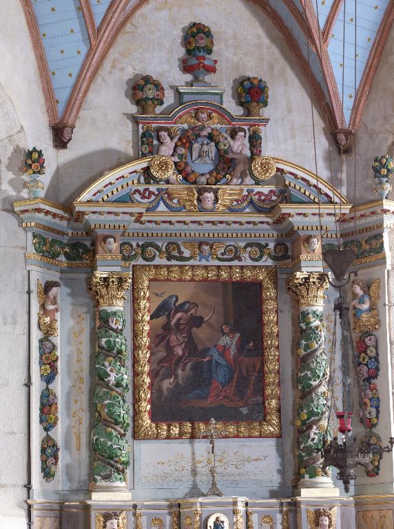 Le retable du maître-autel a été commandé en 1765 par Alain Moal pour la fabrique de l'église Notre-Dame à l'atelier Louis Lanchou de Châteaulin. Le retable latéral nord, représentant Sainte Barbe, provient d'une chapelle de Pont-de-Buis.