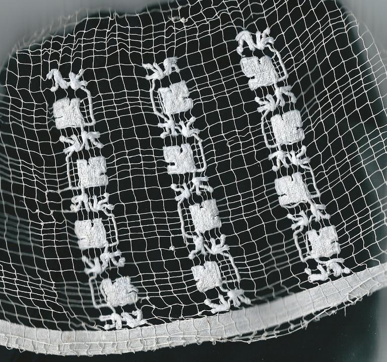 Cette coiffe des cantons de LANDIVISIAU, PLOUDIRY, SIZUN, SAINT-THÉGONNEC, et commune de GUICLAN à la particularité d'être réalisée en filet irrégulier. Hormis la première étape démontrée dans l'encyclopédie des ouvrages de dames de Thérèse DE DILMONT, cette méthode n'était plus répertoriée. La nécessité de la retrouver a été un impératif de l'association.