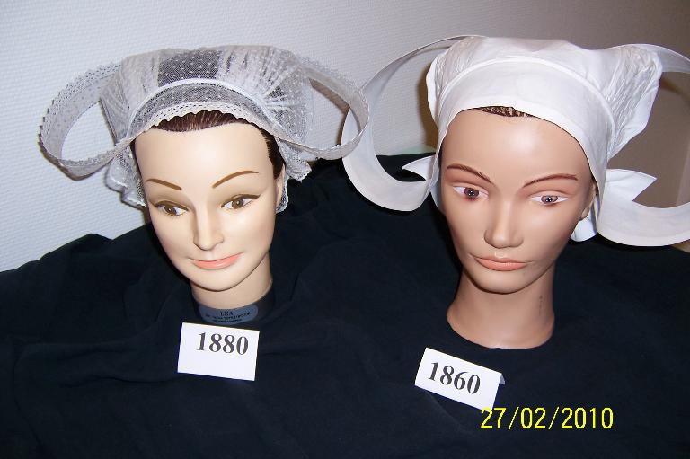 Au XIXe siècle, la coiffe « Sparlenn » était fabriquée en toile blanche et comportait un bavolet importantre tombant à l’arrière sur le dos ; à l’avant, elle se prolongeait au-dessus du visage et ses longues barbes étaient maintenues relevées sur la tête.C’est à la fin du XIXe siècle – début XXe siècle qu’elle se modifie tout en gardant une forme proche. Le matériau utilisé, tout d’abord, n’est plus la toile, mais le tulle et surtout le filet brodé ou non. Le bavolet disparaît et les barbes s’affinent