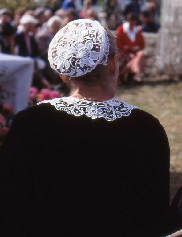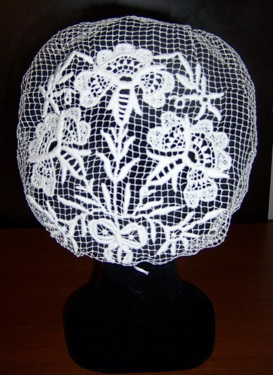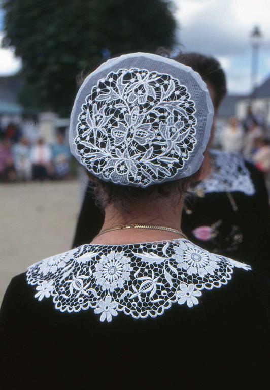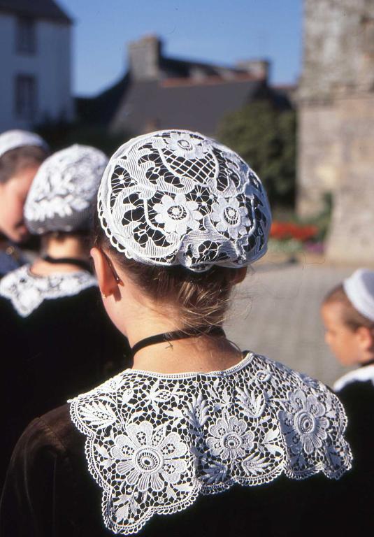 La coiffe portée par les Carhaisiennes sera encore plus petite : c’est un fond de dentelle, ou simple tulle ou filet, couvrant leur chignon sur la nuque. Elle est inséparable de son col de dentelle, parfois simplement crocheté ou bien en fine dentelle aux motifs assortis à la coiffe. Les sœurs Goadec, fameuses chanteuses de Kan ha Diskan, portaient fièrement cette tenue.