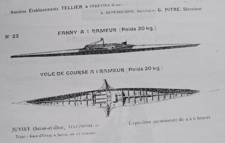 Ce canot a été construit par les chantiers A. Déperdussin à Juvisy-sur-Orge (91). Les avirons portent la marque "veuve Seyler et fils" des chantiers de Courbevoie (92). Le chantier Veuve Seyler a quitté Courbevoie pour le Perreux-sur-Marne (94) en 1912.