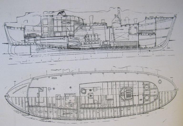 Intérieur : chaque partie est isolée de la coque par des cloisons étanches qui les séparent des réserves de flotabilité. 10 compartiments étanches garnis de 112 caisses à air en cuivre assurant l'insubmersibilité. Poste de pilotage fermé. Salles des machines centrée avec deux moteurs Baudouin de 140 cv chacun. Un poste des naufragés (infirmerie) accessible depuis le pont, un poste avant. 8 dalots à soupapes automatiques pour évacuation de l'eau.