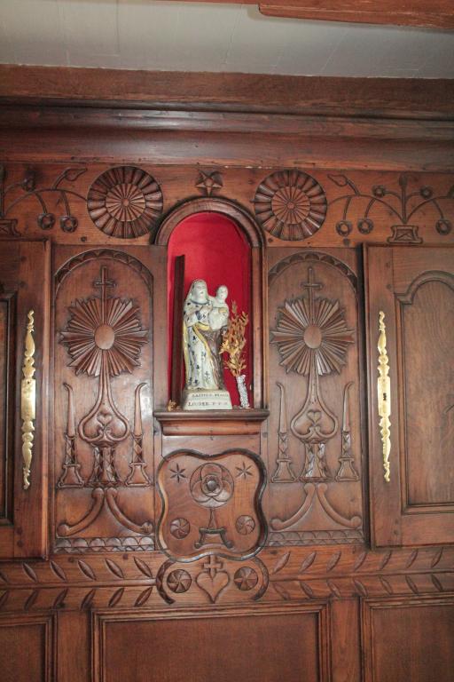Parmi eux, les motifs religieux ont une place centrale : niche abritant une statuette de la Vierge à l’Enfant, ostensoirs dans plus de 80% des meubles observés ou encore cœurs surmontés d’une croix, ciboires et têtes d’angelots. Ces décors faisaient entrer le religieux dans la vie quotidienne et transformaient le drustuilh en un véritable autel domestique auprès duquel ont faisaient la prière du soir et on veillait les morts.