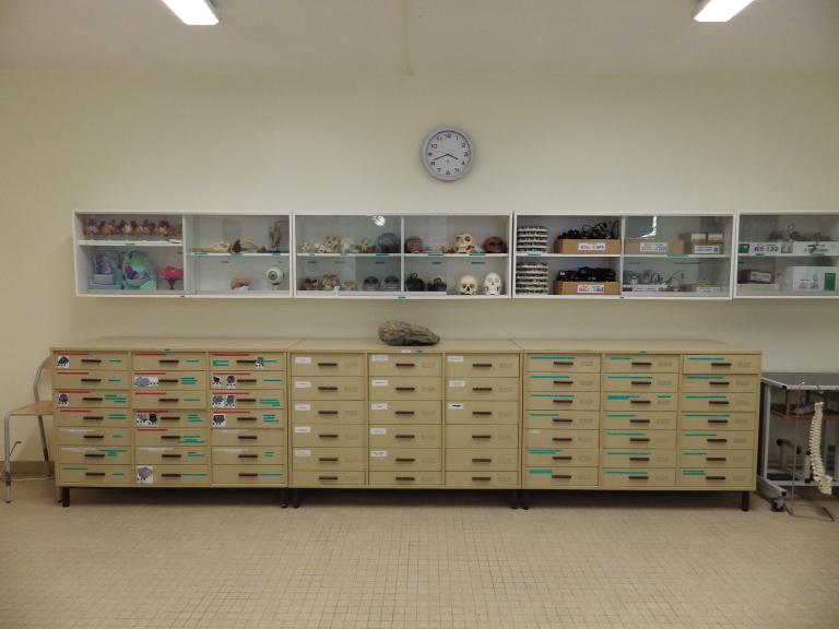 Très peu de spécimens de zoologie, en particuliers pour l’embranchement des vertébrés, ont été conservés. Une articulation de la hanche humaine, des squelettes sur socle (lapin, chauve-souris, carpe, serpent, pigeon et grenouille), une corneille naturalisée, des pattes et un crâne de cheval. Un squelette humain non monté sur socle est également conservé.