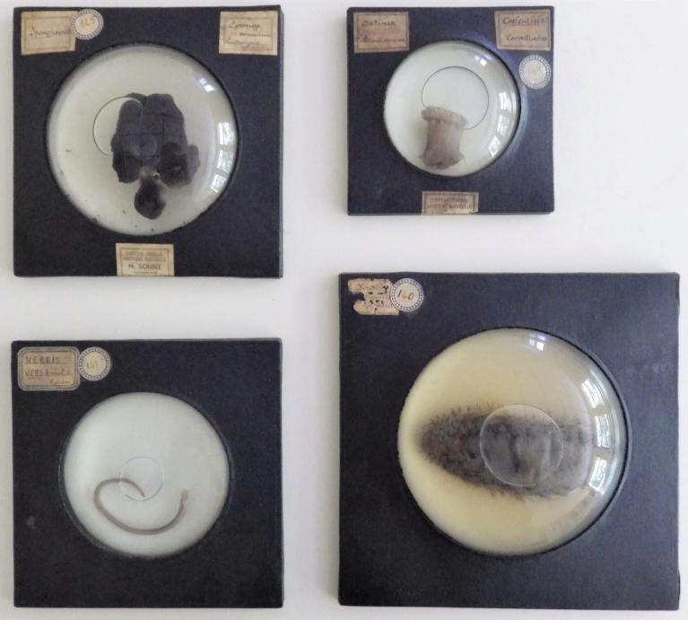 Quelques spécimens invertébrés naturalisés sont aussi conservés, notamment des vers, des polypes et des spongiaires.