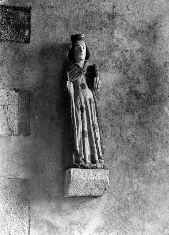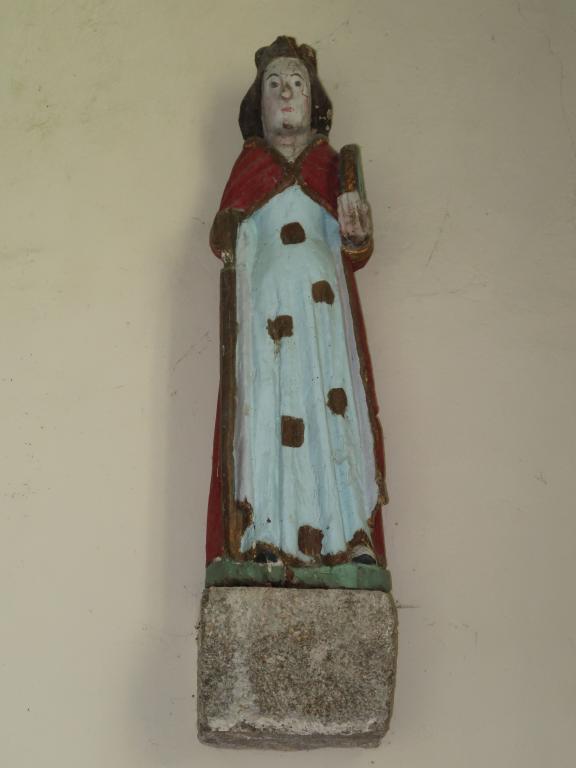 Sainte Catherine d'Alexandrie est représentée debout tenant de sa main gauche une petite roue lisse et de sa main droite une longue épée.
