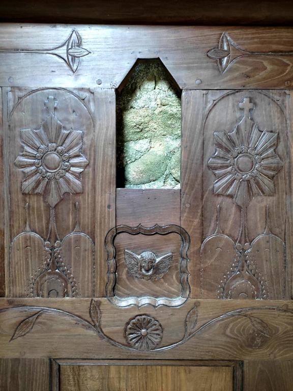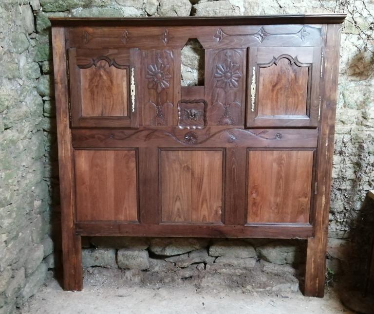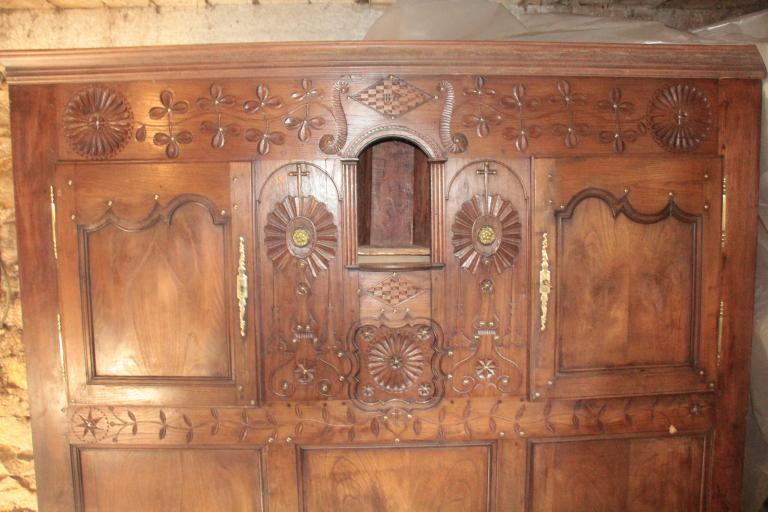 Parmi eux, les motifs religieux ont une place centrale : niche abritant principalement une statuette de la Vierge à l’Enfant, ostensoirs dans plus de 80% des meubles observés ou encore cœurs surmontés d’une croix, ciboires et têtes d’angelots. Ces décors faisaient entrer le religieux dans la vie quotidienne et transformaient le drustuilh en un véritable autel domestique auprès duquel ont faisaient la prière du soir et on veillait les morts.