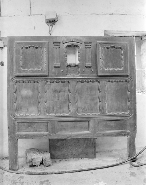 La partie basse du meuble présente 3 à 5 (voir plus) panneaux rectangulaires ou chantournés simples. Le haut, visible même si quelqu’un est assis sur le banc, est quant à lui composé, dans la majorité des cas, d’une niche à Vierge centrale (ou niche à saint) flanquée de deux battants de porte, le tout décoré de nombreux frises et ostensoirs sculptés en bas-relief. Le sommet du meuble est coiffé d’une corniche soigneusement moulurée.