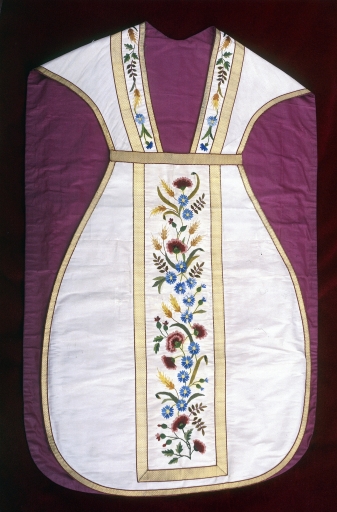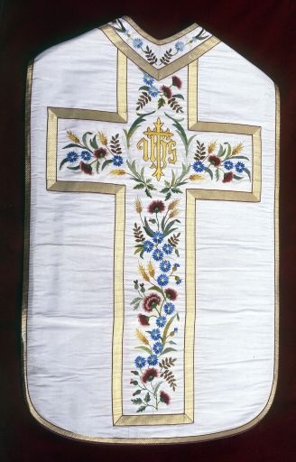 Parties constituantes non étudiéescoffret aux saintes huiles, chandelier, croix de procession, encensoir, bassin à burettes, burettes, verrière, clef, chandelier, lampe, reliquaire, lustre, livre, statue, banc de fidèles, lutrin, tronc, stalle, chemin de croix, chasuble, chape, parement d'autel, bannière de procession, bénitier