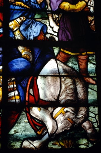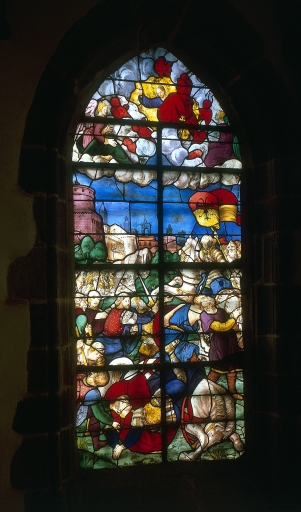 Verrière (verrière figurée) : saint Paul terrassé sur le chemin de Damas (baie 2),