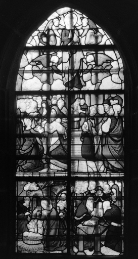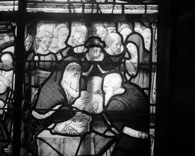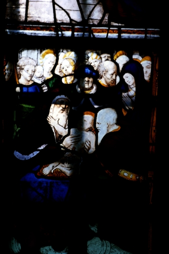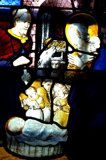 Verrière (verrière historiée) : Enfance du Christ, Vie de la Vierge (baie 3),