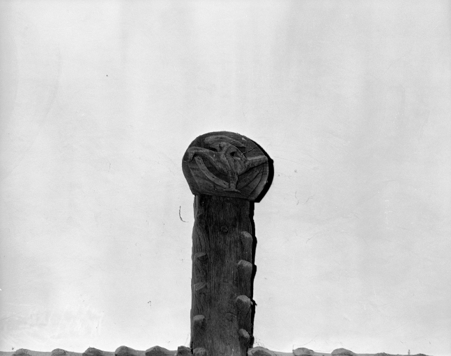 Assemblage à demi-enfourchement. Taillé (décor en bas relief).
