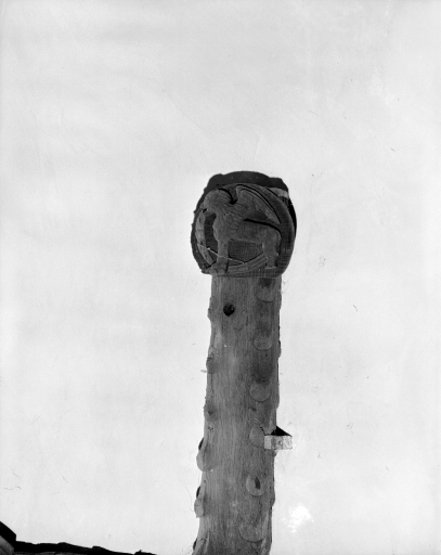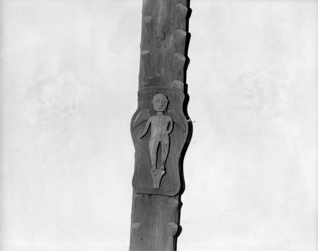 Manque le christ en croix ; à la base, l'ange en bas-relief semble refait.