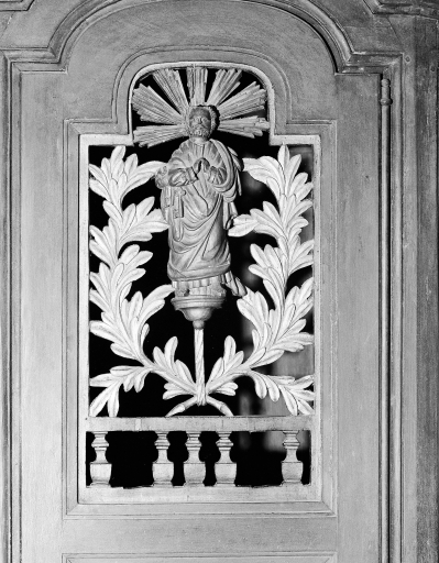 3 pans coupés surmontés d'un dôme à pans ; fiche à lacets pour l'un des battants.