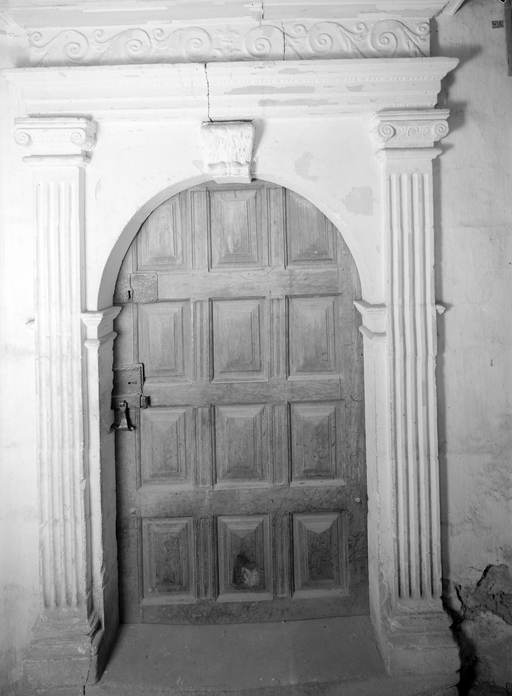 Ensemble de trois vantaux daté 1594 (correspond à la date gravée puis falsifiée, 1594 transformé en 1524, dans un cartouche dans la partie basse du piédroit de la porte donnant accès à la sacristie) .