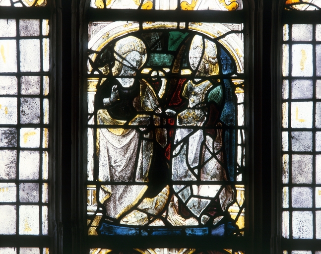 Verrière (verrière hagiographique) (baie 3), ancienne collégiale, actuellement église Sainte-Marie-Madeleine (Champeaux),